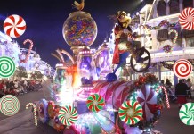 Santa and Mrs. Claus are transforming Lake Buena Vista into a Winter Wonderland filled with colorful decorated pontoon boats and waving Christmas wishes to everyone.