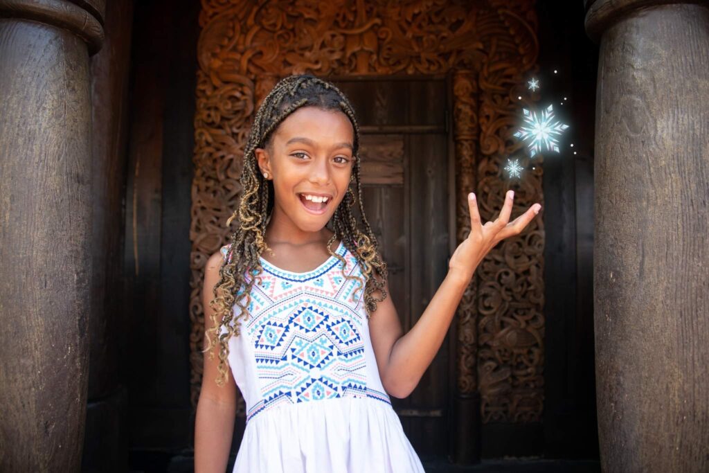If you enjoy the studio royal treatment, drift over to the Disney Springs Marketplace where a (virtual) winter wonderland awaits. This Disney PhotoPass Studio offers many themed virtual backdrops, including one inspired by “Frozen.” Its gates are open daily from 10 a.m. to 9 p.m., and no reservations are required.