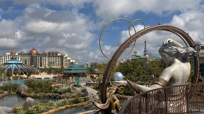 - Celestial Park – The lush, starry-themed central hub filled with gardens, water features, and a massive dual-launch coaster