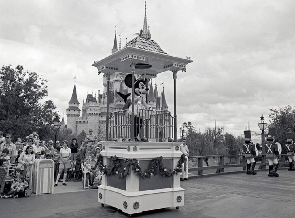 During Disneyland’s “Fantasy on Parade” in 1972, Christmas spirit soared as Mickey Mouse himself took the reins of Santa’s sleigh! This magical moment brought holiday cheer to all the park’s guests, including the reindeer who joined the festive parade.