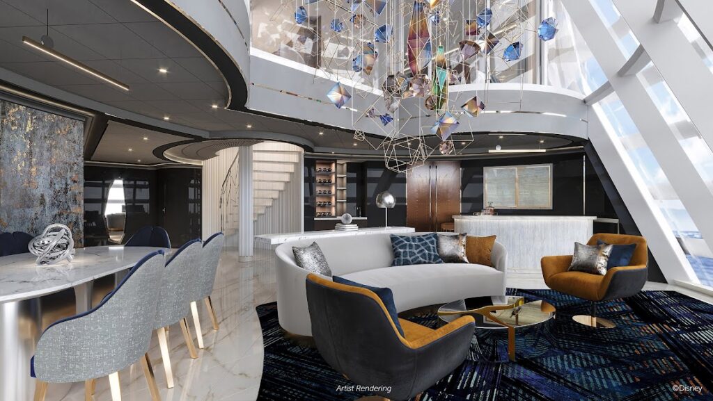 The artful accommodations aboard the Disney Treasure will be inspired by classic Disney tales of adventure. The 1,256 staterooms onboard will feature custom artwork and design elements that evoke the exploratory spirit of beloved Disney and Pixar films including “Aladdin,” “Pocahontas,” “Up” and “Encanto,” while the concierge and royal suites will bring to life the incredible character journeys – and
