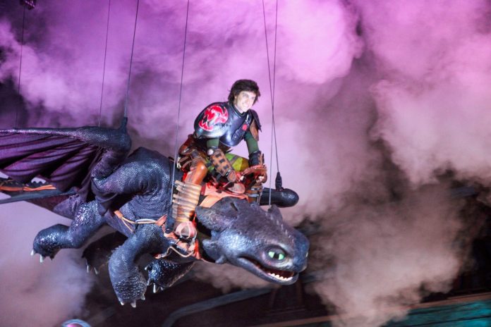 Over in How to Train Your Dragon Isle of Berk, The Untrainable Dragon delivers a heartfelt and visually stunning musical that centers on Hiccup facing his toughest challenge yet, a dragon that refuses to bond. Fans will see Astrid, Gobber, and Toothless as the story flashes back to Hiccup’s past dragon taming triumphs, complete with impressive stunt work and emotional beats. The show’s showstopper moment comes when Hiccup and Toothless soar above the audience, wings stretching nearly 27 feet across as fog rolls in and the music swells. It is one of those moments that makes the whole park stop breathing for a second.